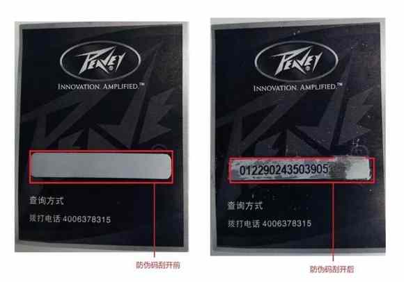 在中國銷售的所有Peavey產(chǎn)品上都貼有防偽標簽,客戶可以通過防偽碼查詢分辨真假——刮開防偽碼,撥打防偽標簽上面的電話查詢。