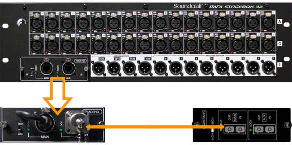 如果添加第二個MADI擴展卡就能夠同時連接兩個Soundcraft迷你舞臺接口箱(32R、32i或16R、16i),最多可獲得96個話放。