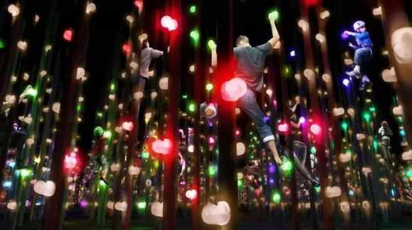 “體育森林(athletics forest)”是teamlab的另一個靈感,即把創意和肢體行為融為一體,既能促進大腦發育,也能訓練人們的空間意識。游客們能夠在發光的寶石組成的攀巖裝置上體驗3D燈光,還有一個像“boing boing universe”一樣的地方供人們跳躍,一個擁有不同高度、不同斜坡的巨大3D“山脈”。游客們參與進來,完全沉浸在交互式的數字藝術作品中,將會給他們帶來一次印象深刻的創意體驗。