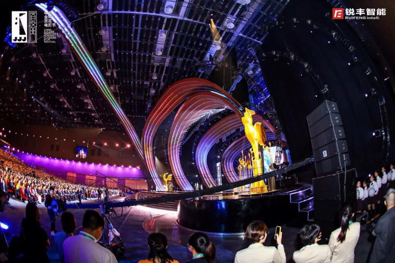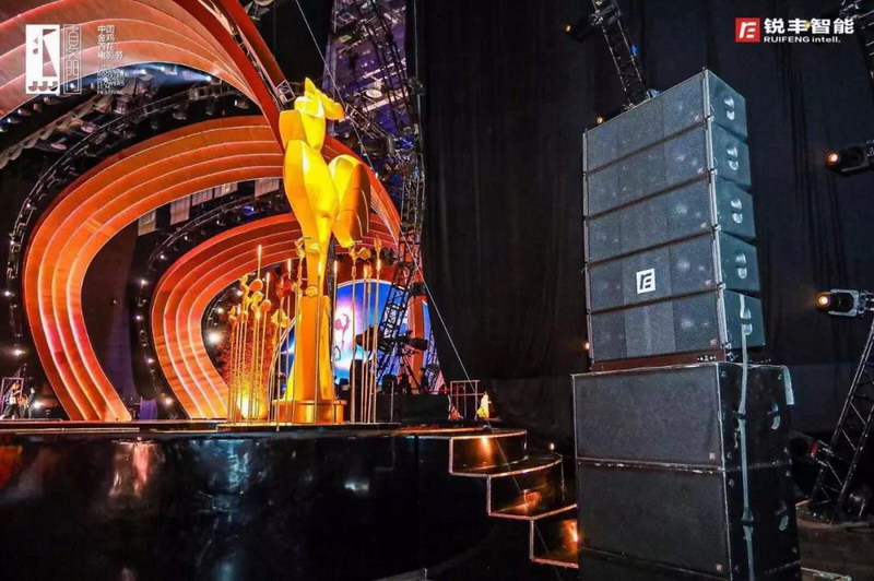 由著名音響設計師——宋多多老師擔任音響總設計,音響總監(jiān)為宋仁一老師。由銳豐智能為音響技術(shù)團隊,紅毯儀式現(xiàn)場采用了"RF"—ML15SA&L7有源音柱揚聲器系統(tǒng),頒獎典禮現(xiàn)場采用了"RF"—GTS線陣列揚聲器作為主擴聲,NOVI線性音柱音箱、MH三分頻同軸點聲源揚聲器系統(tǒng)、TX多功能系列揚聲器、以及周邊設備等產(chǎn)品。