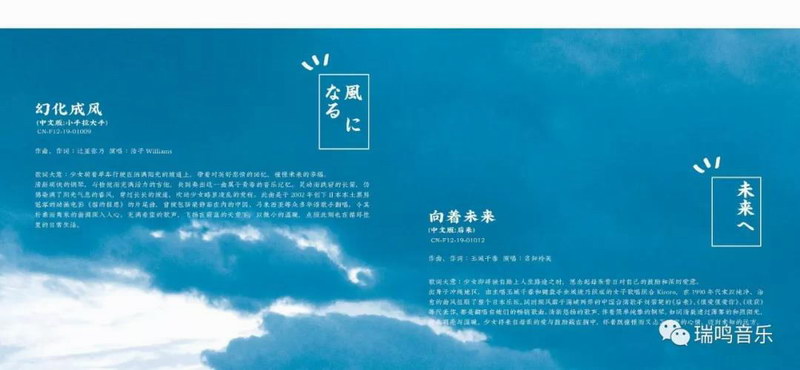 關注【瑞鳴音樂】+轉發本篇文章至朋友圈并附文字“瑞鳴出新專輯啦!轉發文章就有機會免費得最新專輯《那些年我們唱過的日本歌》~”將截圖發送至后臺抽取一名送出《那些年我們唱過的日本歌》CD一張!于11月6日專輯正式上市開獎~