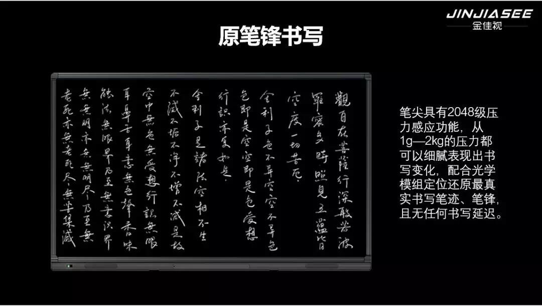 聯合品牌金佳視更是推出“金佳視交互式真跡觸控一體機”創新的光學觸控、真跡書寫,原生態批注等功能,在行業內處于技術領先地位。更是打破傳統會議機、教育機分版本問題做到一款產品 | 兩種場景 | 十機合一| 百種配置 | 千般應用 | 萬里挑一;