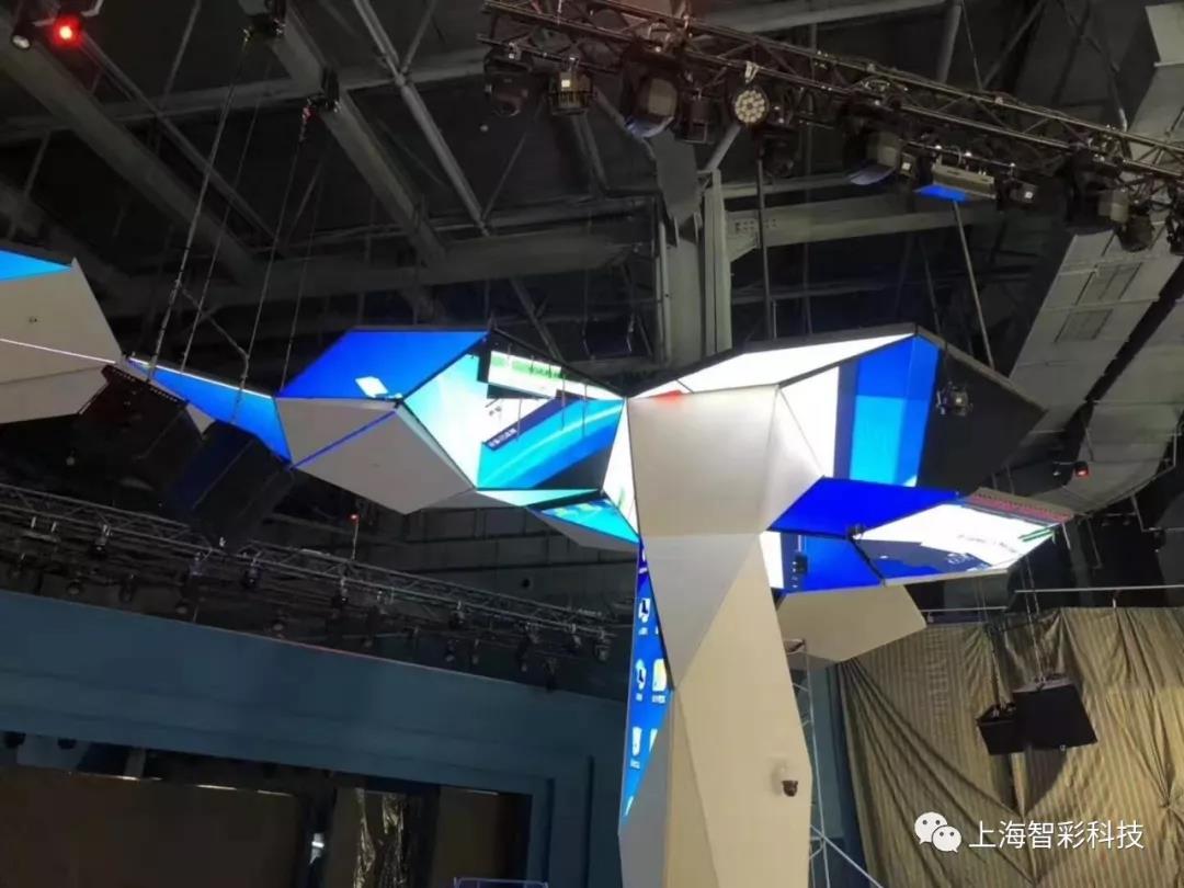 多塊三角形屏幕形成一塊多邊形顯示屏,外形上絢麗奪目,視頻播放,顯示屏拼接等技術上更是需要多年技術的沉淀