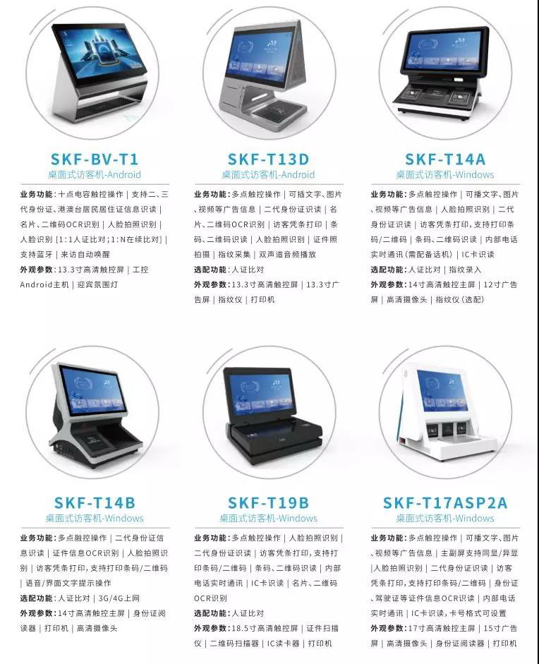 公司產品主要涉及兩個重要領域,主要包括出入口控制領域中的智能訪客終端、智能驗證識別終端、智能通行管理終端等系列產品,以及自助服務領域中的智慧銀行、智慧醫療、智慧公安、智慧政務、智慧城市、智慧圖書館、等多種服務終端系列產品,全面助力智慧安防和智慧城市建設的落地。