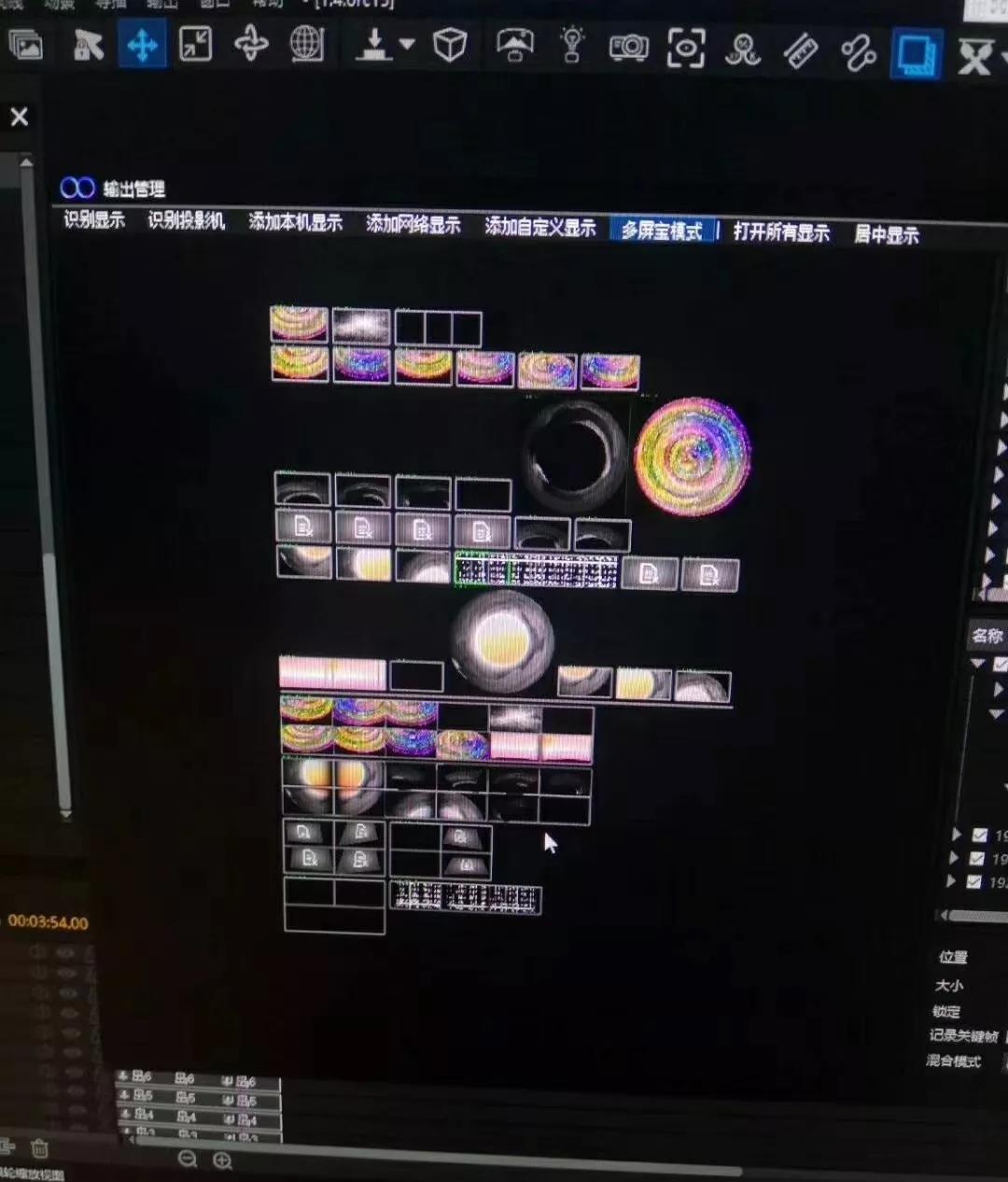頂幕大角度斜投是本次調(diào)試的難點(diǎn)之一,hecoos在軟件中模擬現(xiàn)場各個(gè)投影機(jī)的安裝位置和安裝角度,預(yù)先處理融合帶,避免了傳統(tǒng)融合方式的先將梯形畫面矯正為矩形再進(jìn)行融合,最大限度減少亮度損耗,提升光路有效利用率。