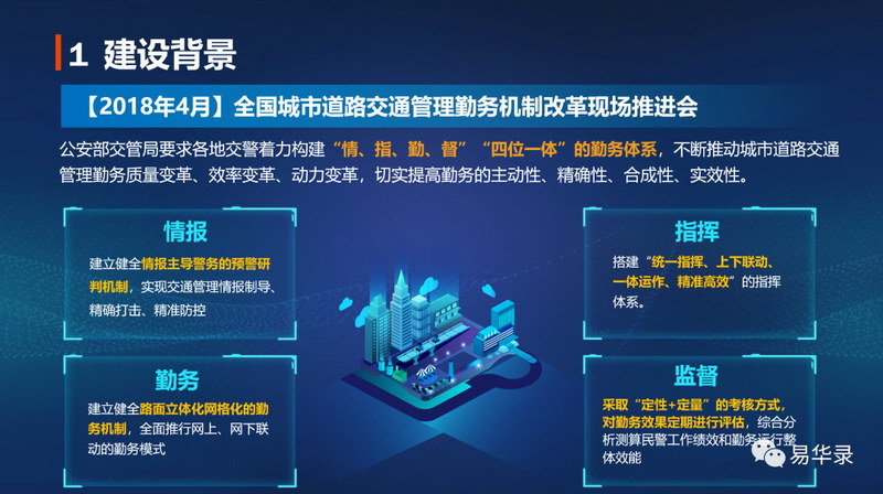 易華錄于2017年起參與到濟南支隊指揮中心升級改造中,依托市局警務云平臺及警用物聯(lián)網(wǎng)技術(shù),建設了集“預警、研判、指揮、調(diào)度、聯(lián)動、運行、考核、監(jiān)督”一體的“情指勤督”新型警務平臺,支撐濟南交通大腦服務,不斷提高勤務的主動性、精確性、合成性、實效性,不斷推動城市道路交通管理工作質(zhì)量變革、效率變革、動力變革。