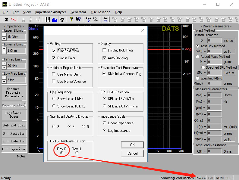 如果您使用的是Rev G硬件,并且使用的是V3.1.0軟件(或更高版本),請(qǐng)打開“Preferences”對(duì)話框(在“Edit”菜單下),并在如下所示的“DATS Hardware Version”選項(xiàng)組中更改為“Rev G”: