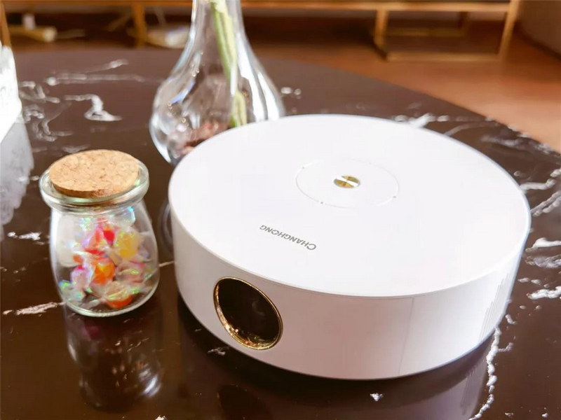 長(zhǎng)虹S2 Pro智能投影儀,圓潤(rùn)小巧,直徑差不多跟一個(gè)手機(jī)一樣長(zhǎng),搬挪、收納容易;