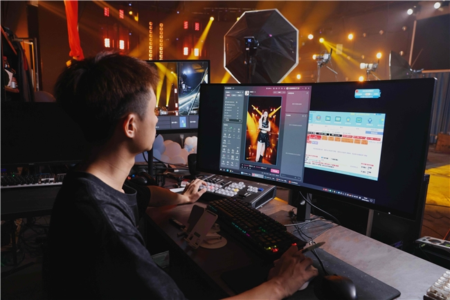 佳能 EOS C80 搭載6K全畫幅背照堆棧式 CMOS感應器,搭配RF70-200mm F2.8 L IS USM Z長焦變焦鏡頭,能拍攝出淺景深、背景虛化優美的高品質影像。在時拍傳媒以燈光棚為主的直播環境中,該設備可精準還原服飾原色與自然清透的人物膚色,讓主播呈現出兼具真實感與質感的“明星感”氣色。時拍傳媒技術總監梁樹根高度認可:“佳能的色彩科學很能打。Canon 709模式色彩直出,拍出來的色彩還原很真實、穩定,在不同光線下都能保證膚色自然好看,這對于我們唱跳主播的呈現至關重要!